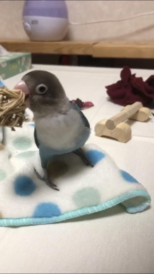 が、私が背中を向けたり少し離れると、私に飛びついて来ます。放鳥時はだいたい私の腕、肩、首周りに居るか、テーブルの上でチョコマカ動いてるか。お気に入りだった綿棒も最近はほとんど遊びません。ケージ内では元気いっぱいに遊び回っています。