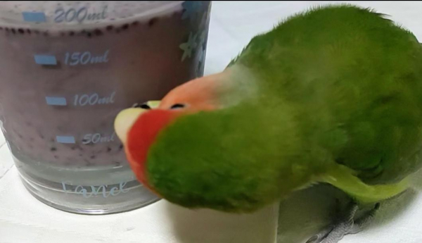 昨夜も、私が帰宅後に、くちばしにペレットが着く程、水を飲んで、餌を食べていました。