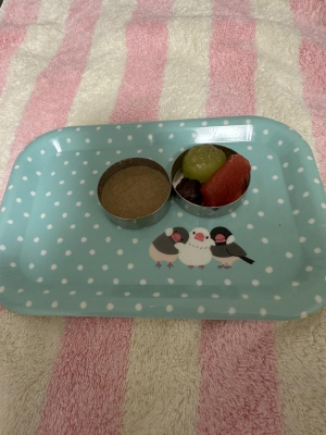 ヨーグルトを取り除き、果物だけを提供しますと、零(れい)はかぶりついて食べ始め、その姿を見た瑠瑠(るる)も食べ始めました。