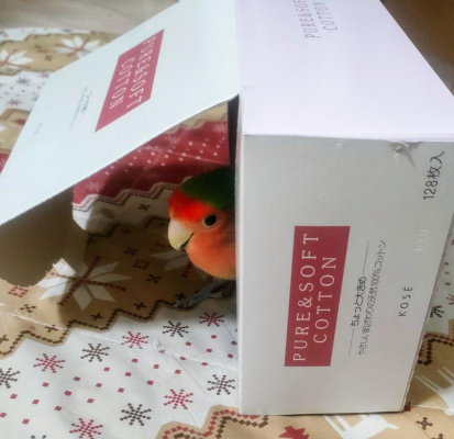 今朝はコットンの空箱(wingsさんと同じでしたね)を置いたら案の定入っていきました(笑)