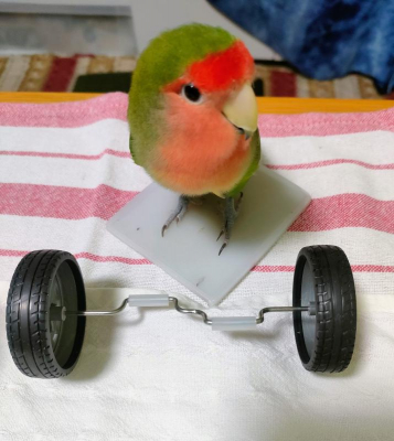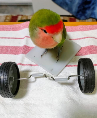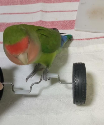 今朝は放鳥してから洗面所に行き、部屋に戻ったらタイヤの前にいました。