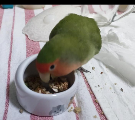 早速口元に持っていったら攻撃してつついたんですが、つついたときに食べ物と思ったのか、器に入れたら興味を持ってつついていました。