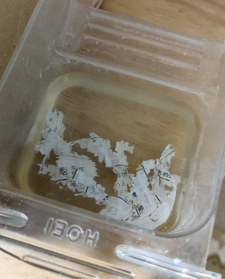 新しいおやつですが、丸くてくぅにはデカすぎたので壊してからペレットと一緒に器に入れました。