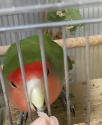 青(あお)くんが餌を食べている所に、私が「青(あお)くん、通りますよ」と声をかけながら通り過ぎても、ケージ内でバタバタと羽ばたき、パニックになることが少なくなりました。