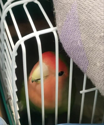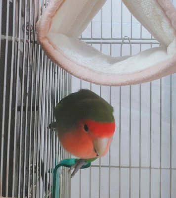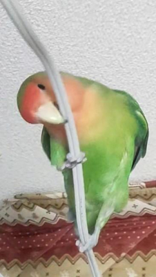 昨日は、コザクラレディースの鳴き声に合わせて、ケージ内で大きく羽ばたいていました。