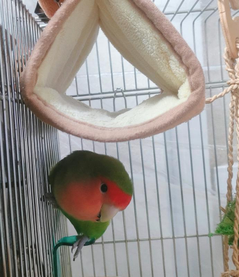 冬場は、暖をとる為に、布を被せると一日中暗いですし、カバーは噛みちぎられるので、困ったものです。