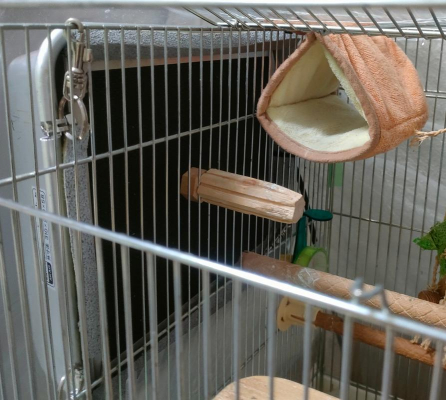 冬場は、暖をとる為に、布を被せると一日中暗いですし、カバーは噛みちぎられるので、困ったものです。