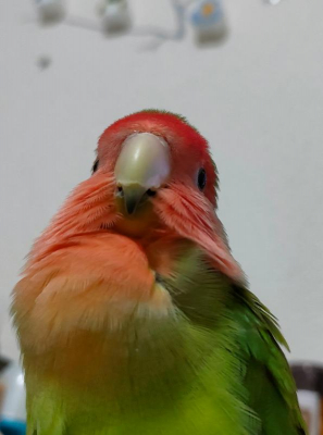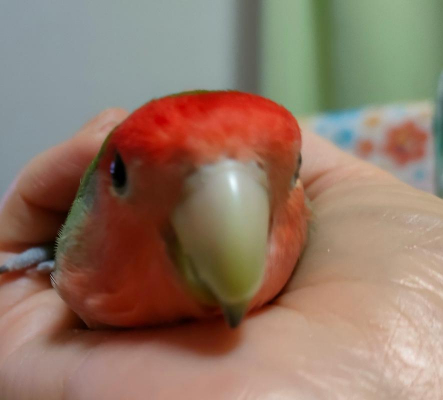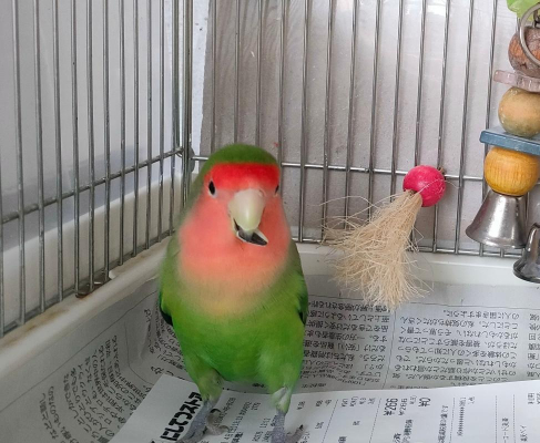 コザクラインコさんの女の仔の頭は平で、男の子は丸いと言われています。