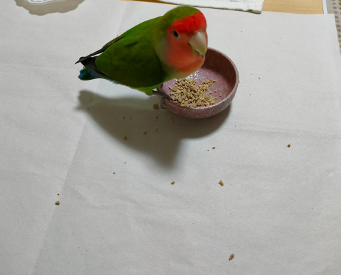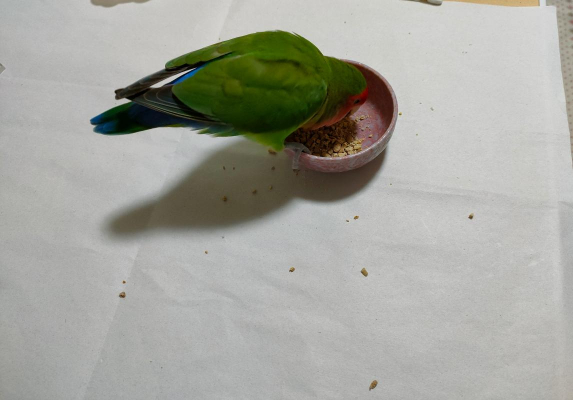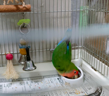 1つの器には細かいペレットと、もう1つの器にシードが入っていて、餌を突く様子が見られているそうで、私はとても嬉しかったです。