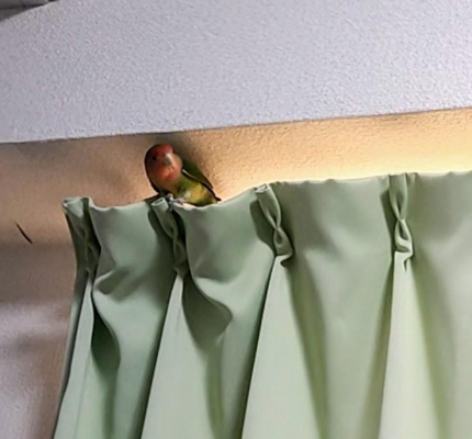 カーテンレールの上に乗り、飛行機ポーズをすることもあり、そのような時は直ぐにケージに戻しています。