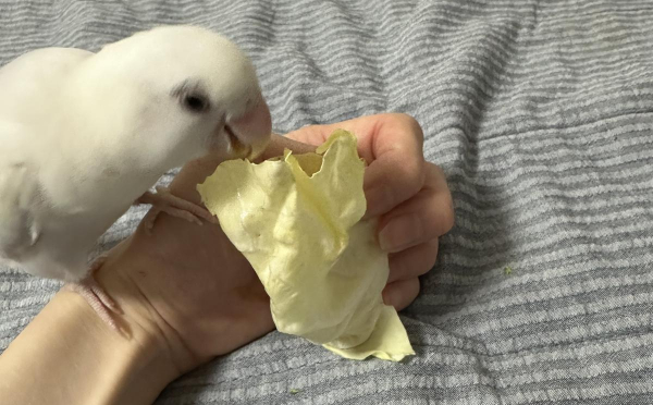 清(せい)ちゃんは、セキセイインコさんの体重と同じくらいの細身のようです。