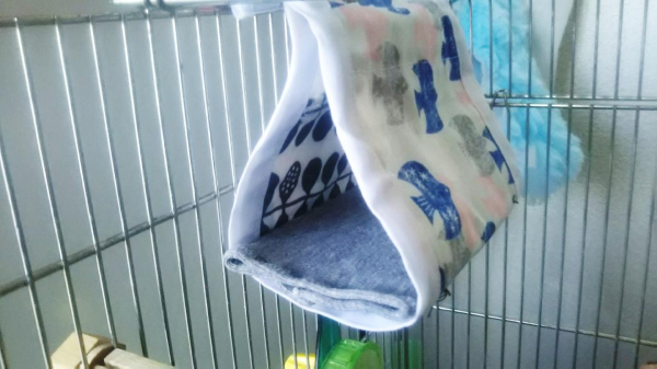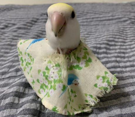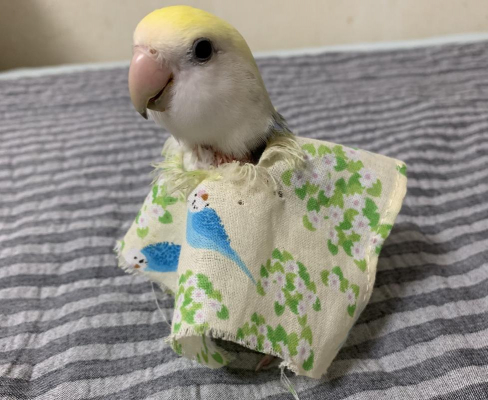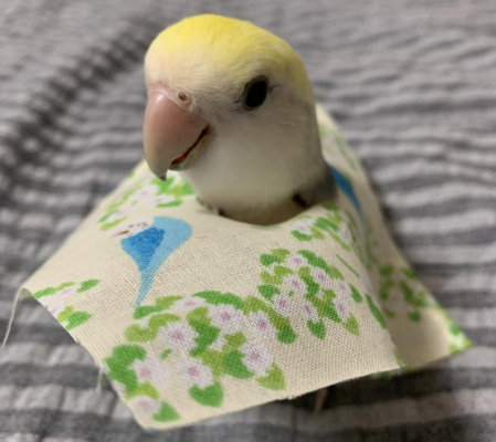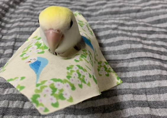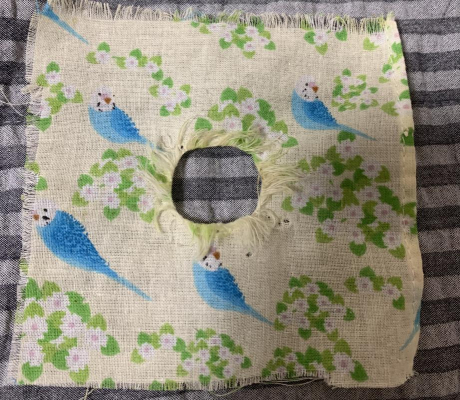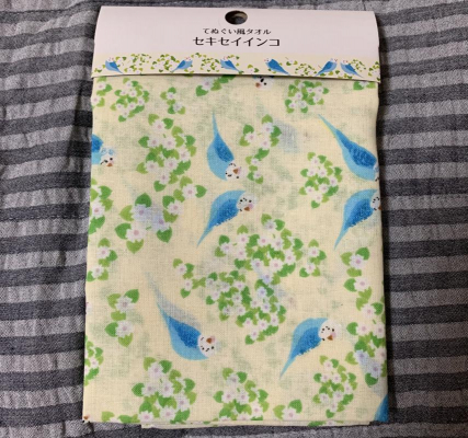 手元にあったセキセイインコ 柄の手ぬぐい風タオルがあったので、帰宅後、早速作ってみました!