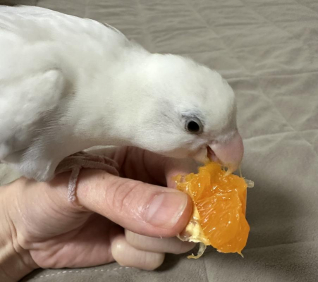 くぅはみかんは食べないのにはっさくや夏みかんなどの大きい柑橘類の一粒は好んで食べます。