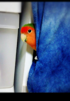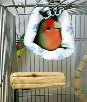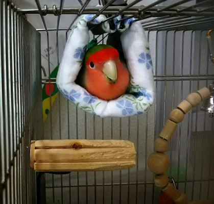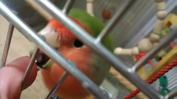 コザクラインコが3羽いますが、男の仔が私宅にも1羽いますが、1番小柄です。