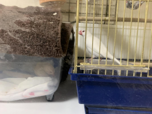 ・プラケースに置いた止まり木にもとまっているし、そこで寝たりもしています