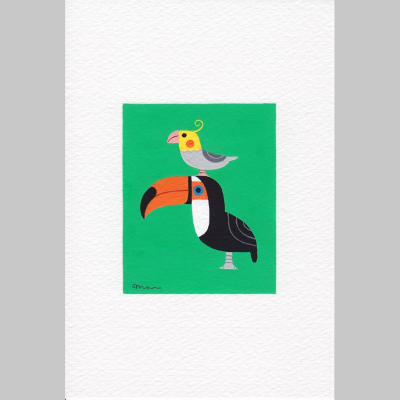 各所で好評をいただいています、小鳥ブレーメンの新作絵画が出来ました。