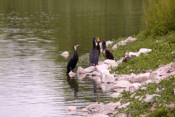 水鳥も羽を乾かしてたんですかね。