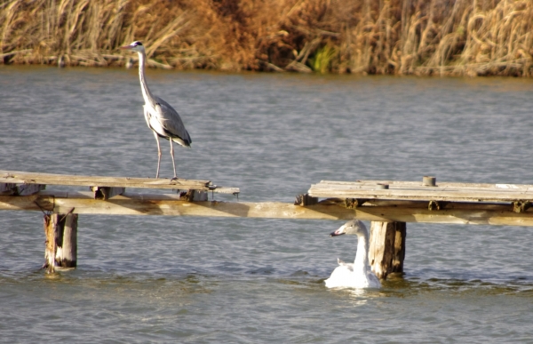 カルガモを助けようとしたコブハクチョウは