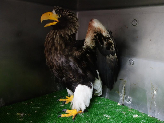 先日の交通事故に鉛中毒のオオワシは手術から6日目で見事、