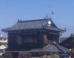 偶然携帯で撮れたので小さいですがトビにモテるお宅。上にまだ舞ってるのも。