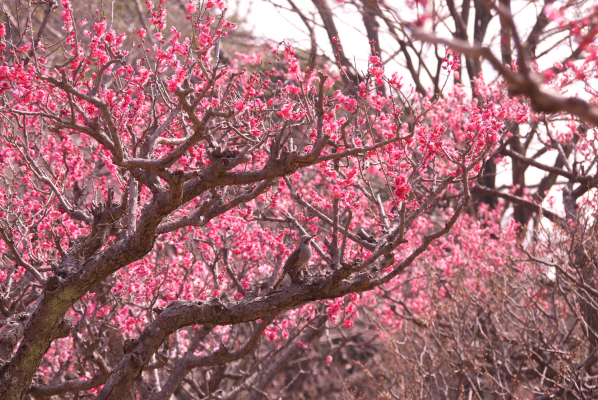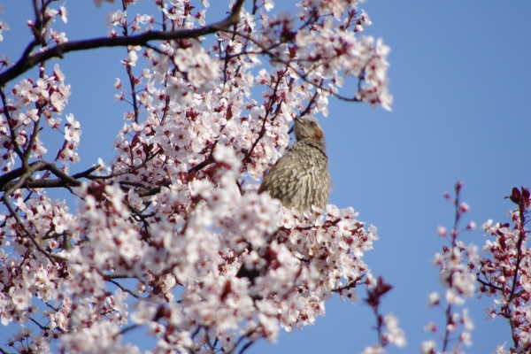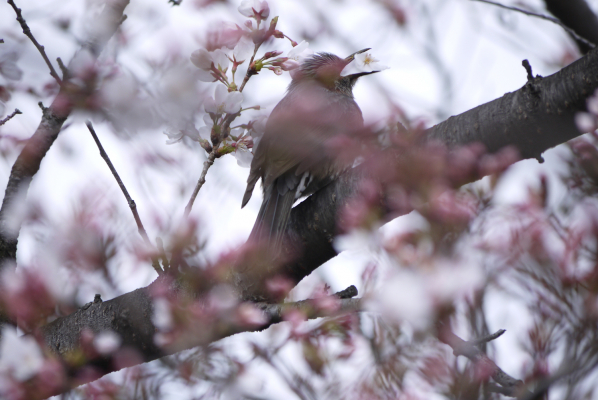 桜にウグイス・・・と思ったらヒヨドリとメジロがうきうき気分で