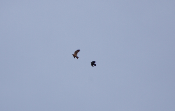 今朝、地表数メートルのところで、ハイタカがカラスに追われてるのを見ました。