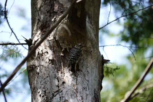 このあいだは、コゲラが巣作りしてるところを見かけました。あの巣も毎日観察できるかも。