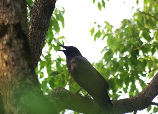 カラスはもう1回絶叫し、少し離れた木へ飛んで行きました。