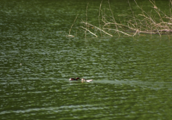 カイツブリがこないだまで背中に乗せて子育てしてた、と教えてくれました。