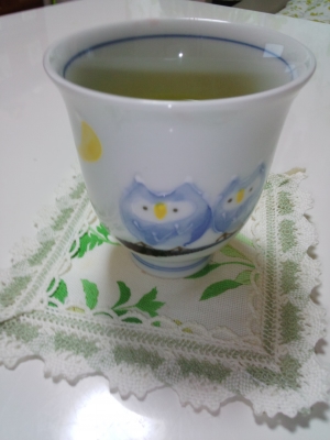フクロウのお湯のみでお茶をしばいてるときに、フクロウのお迎えを知る…