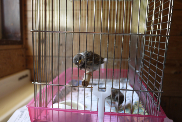 障害のある子は、どうやら左足だけでなく右足もうまく力が入らないようです。止まり木から落ちてばかりいます。せめて飛ぶ訓練を、、とがんばってますけど、困りましたね。