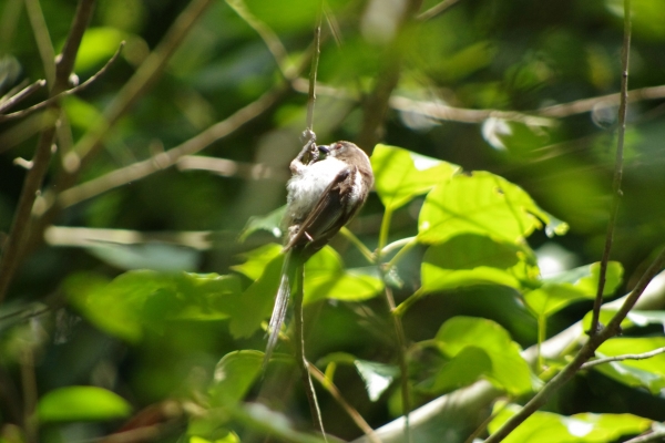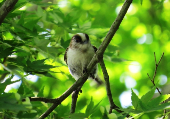 エナガの幼鳥は、色も薄く腹の赤みもまだついていません。