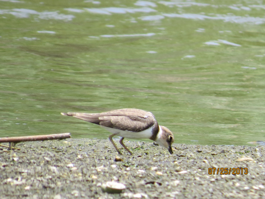 あっぱれです。餌をたくさん食べて、曇りがかった天気の中水辺の近くで