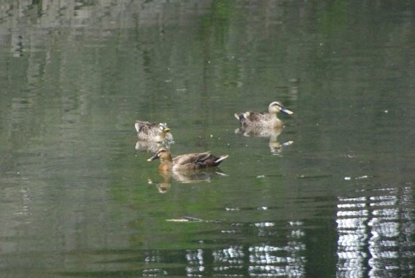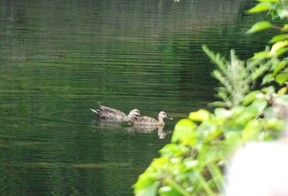 MFの兄弟そろっていたカルガモは、それぞれ別の成鳥達に混じっていました。