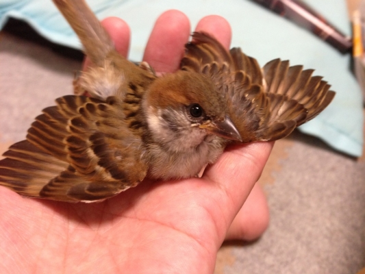 スズメのコロちゃんを保護して1ヶ月あまりたちました。