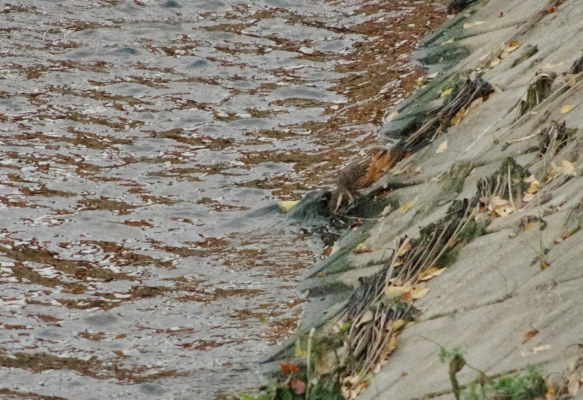 ヌートリアはこちらでも、水が少なくても、この寒い中スイスイ泳いでました。