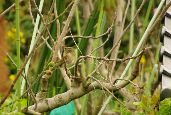 ジョビは実家の庭にも来ていました。家の壁をつたうジョウビタキの♂