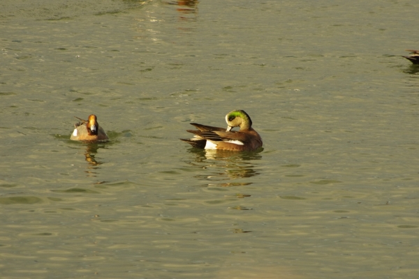 オオバンやカイツブリ、コガモにヒドリ、おや、アメリカヒドリの♂が