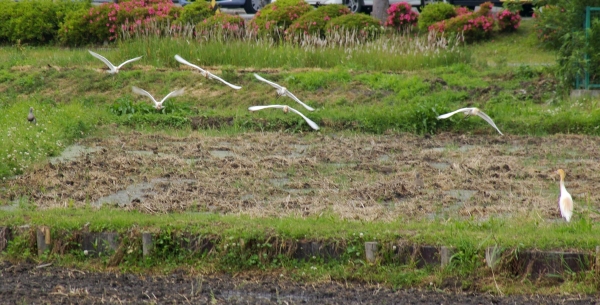 アマサギ達 背景が気に入らないのですが… ツバメ父さんですね