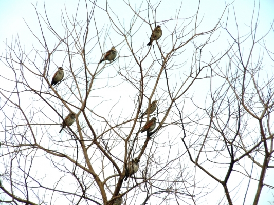 スズメと、ヒヨドリ、鳩しかまだ来てくれません、目白ちゃん早く来ないとみかんなくなるよと言ってるのに・・
