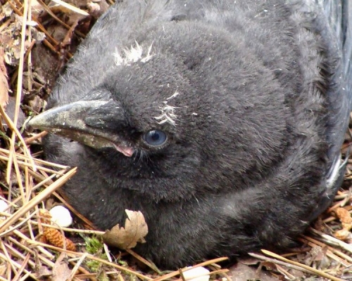 ハシボソの雛です。雛は目が青いようで。