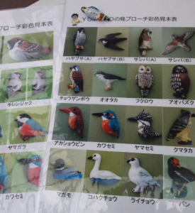 どんぐりや木材などを使った工作や、鳥のブローチの色塗りなど
