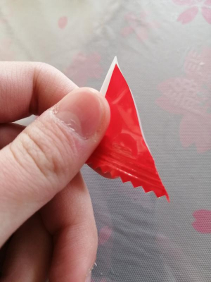 1ヶ月齢の鶏の中雛で、4日前にお菓子の包装の切れ端(1辺3.5cm三角形状)を誤飲しました。