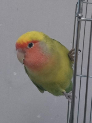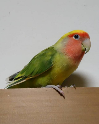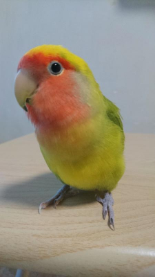 特徴:顔が桃色 頭部と腹が黄色 羽根が緑 尾羽根が青 スマホの同種の画像と音が好きです。