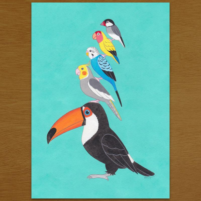 絵画「小鳥ブレーメン ティファニーブルー」https://www.creema.jp/item/11987983/detail