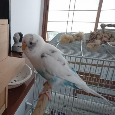 特徴:おとなしいこです。手乗りですが、やや臆病な面もあります。飛ぶのが得意な子です。名前「みる」と呼ぶと反応します。高めの声で鳴きます。