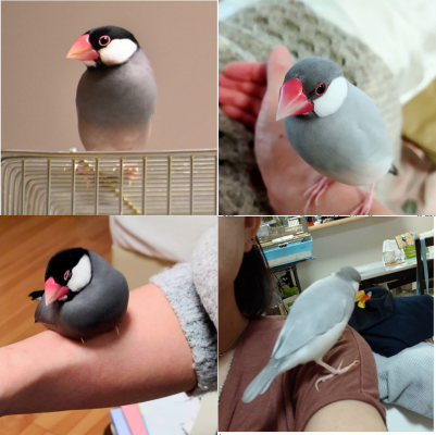 色:桜文鳥/頭は黒、頬と嘴の下は白、おなかは黒~白のグラデーション