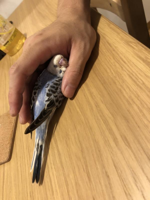 あまりにも元気がいいしたまに呼び鳴きもするので、もっと長距離を飛びたいのかな?練習でもさせようかな?と思って出すと、全く飛ばずに大好きなお父さんの手の中に無理やり潜り込んで身も心も預けてスヤスヤ寝ます…。