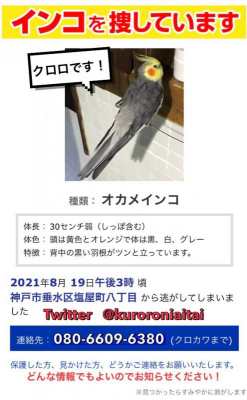 特徴:大人しいです。背中の黒い羽根がいつもピンと立っています。