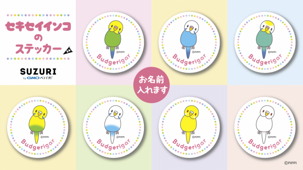 【値下げ】セキセイインコのステッカー【お名前入れます】